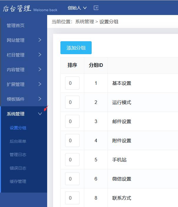 后台菜单: 隐藏后台一些暂时用不到导航菜单功能,让后台更简洁明了。